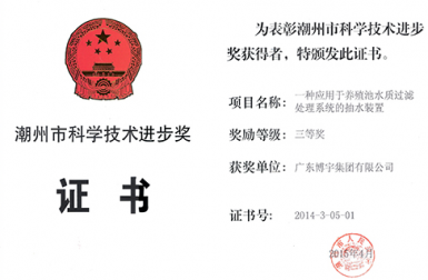 獲“2014年度潮州市科學技術進步獎三等獎”
