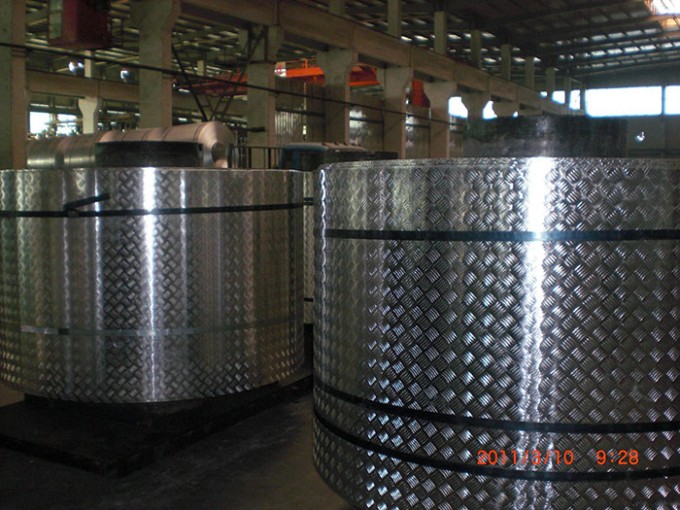小五條筋花紋鋁板外形美觀,能防滑,等諸多優(yōu)點,在交通,建筑,裝飾裝潢,設(shè)備周圍底板,機(jī)械,造船等領(lǐng)域有廣泛應(yīng)用。一般來說,使用方對花紋板力學(xué)性能,機(jī)械性能要求不高,因此小五條筋花紋鋁板質(zhì)量主要表現(xiàn)為花紋成花率,花紋高度,花紋高差。